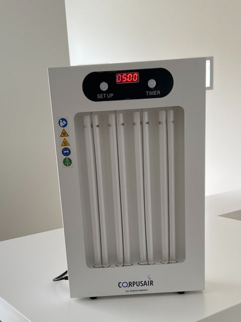 De Corpusair-lamp is CE-gecertificeerd als medisch hulpmiddel en maakt gebruik van Philips-lichtbronnen met smalband-UV-technologie.